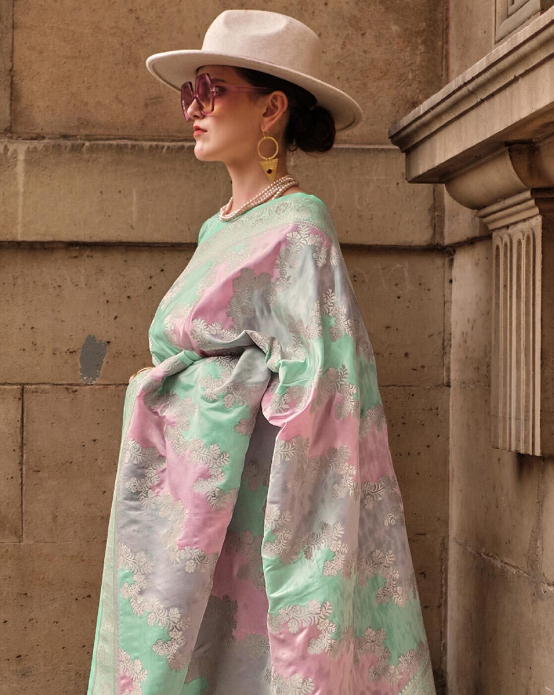 • This saree from the house of Ri-wah is made from Satin Silk. Ri-wah Saree With Blouse Piece, Which can be Stitched according to Your Taste and Preference. This Saree is Crafted by Skill Craftsmen without Compromising on its Quality. With This Beautiful Design and Fabric, This Saree will fetch You Oodles of Compliments and Praise. saree fit size is 5.5 mtr saree & 0.8 mtr blouse, Free Size |.