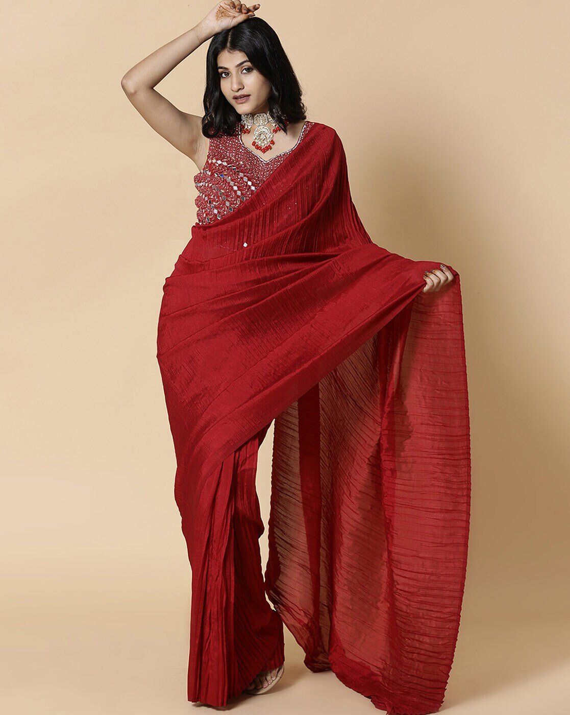 - The last image gives a detailed look of the blouse piece that comes with this saree (The model is wearing a blouse from our in-house wardrobe)